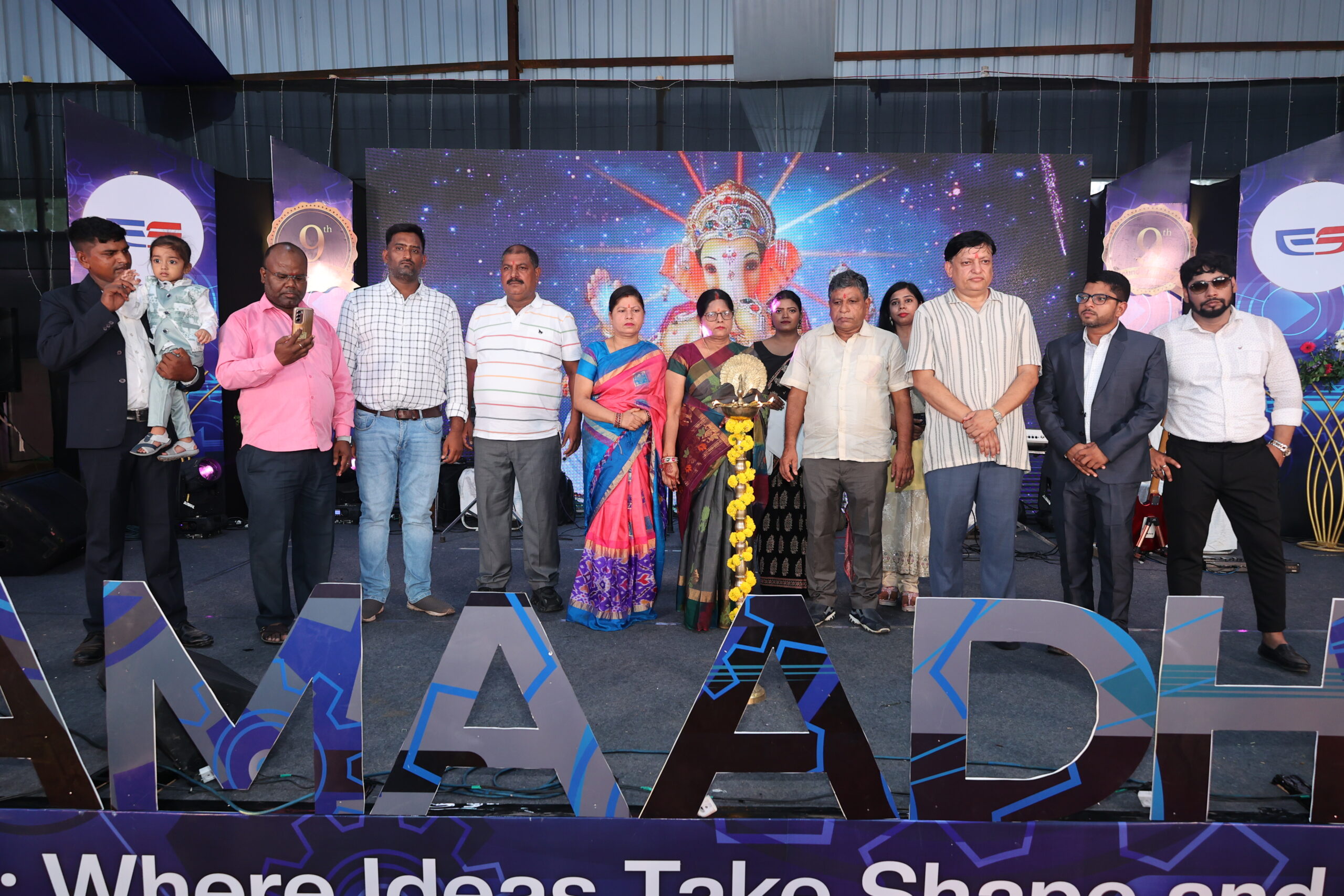 kneeraj in group photo after lamp lighting at esamaadhan 9th foundation day
